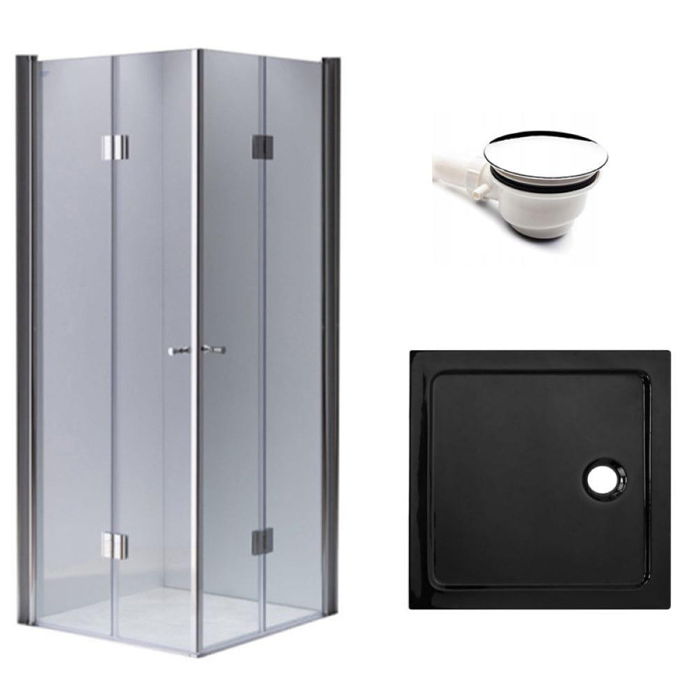 Zestaw - kabina prysznicowa kwadratowa 100x100 cm - brodzik - syfon