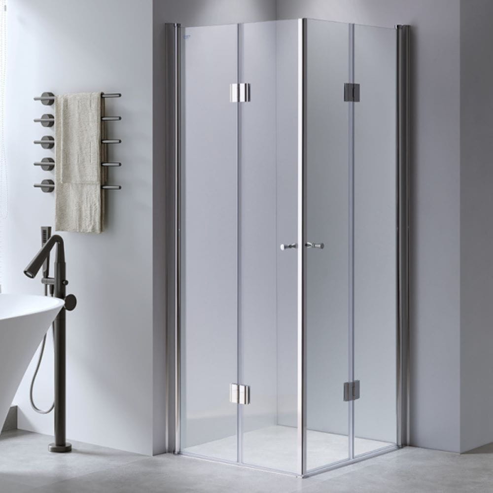 Zestaw zawiera: szyby z technologią NANO GLASS o grubości 6 mm, aluminiowe profile z regulacją 20 mm, stalowe rączki, listwa progowa aluminiowa, uszczelki oraz śruby montażowe.