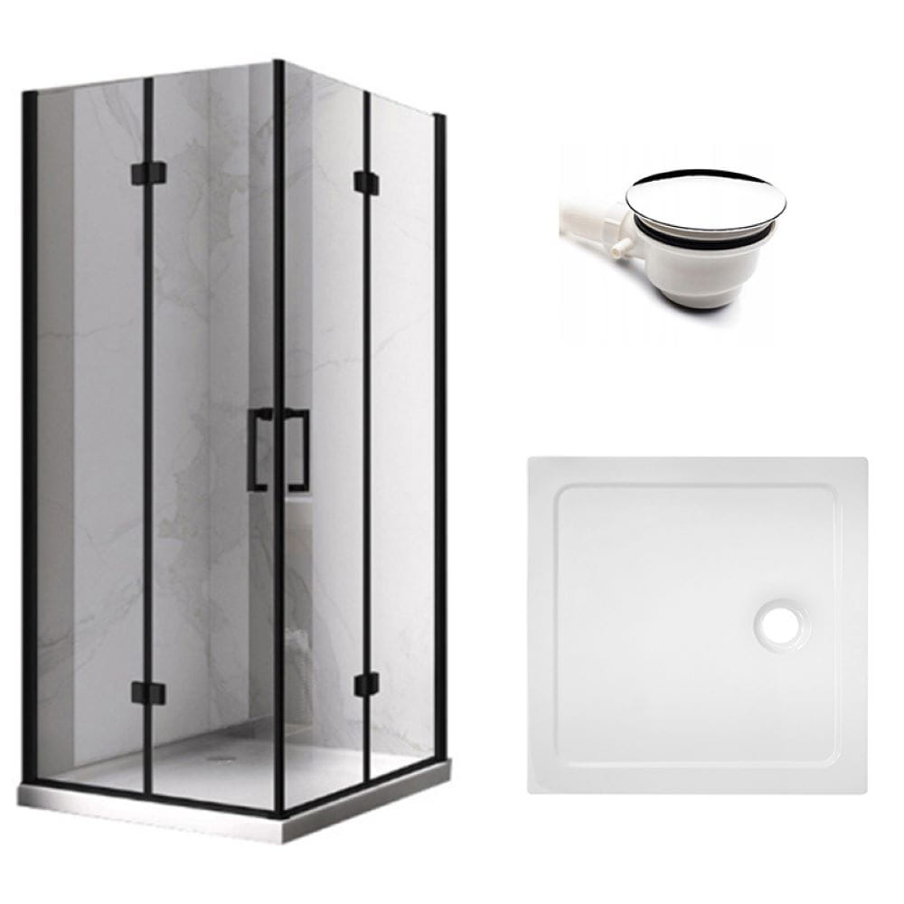 Zestaw - kabina prysznicowa kwadratowa 100x100 cm - brodzik - syfon