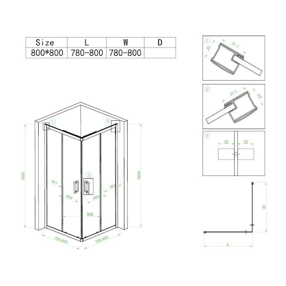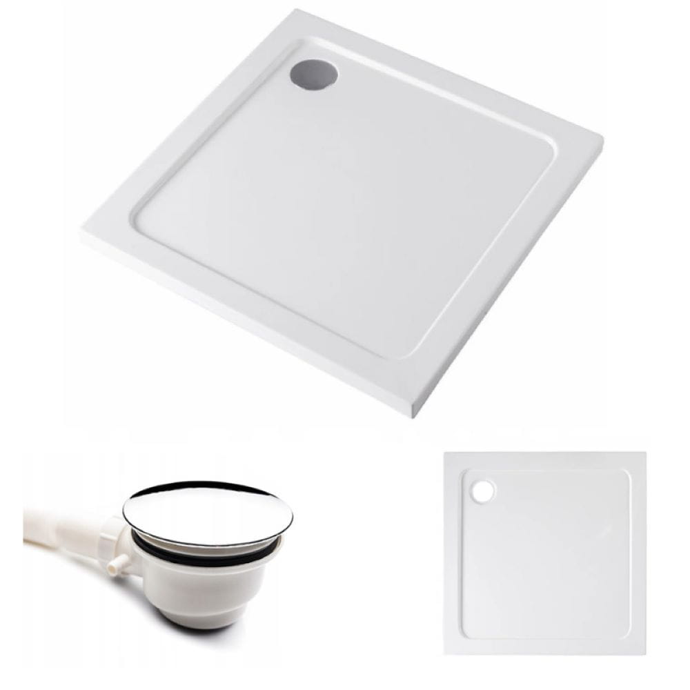 Zestaw - kabina prysznicowa kwadratowa 80x80 cm - brodzik - syfon