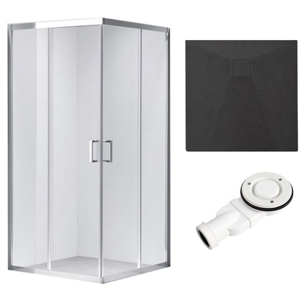 Zestaw - kabina prysznicowa kwadratowa 90x90 cm - brodzik - syfon