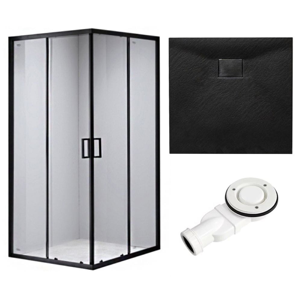 Zestaw - kabina prysznicowa kwadratowa 90x90 cm - brodzik - syfon