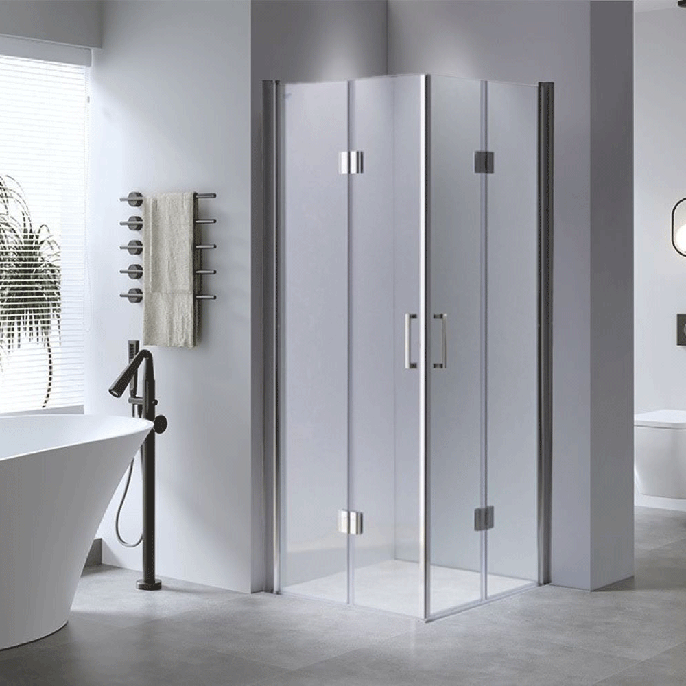 Zestaw zawiera: szyby z technologią NANO GLASS o grubości 6 mm, aluminiowe profile z regulacją 20 mm, stalowe rączki, listwa progowa aluminiowa, uszczelki oraz śruby montażowe.