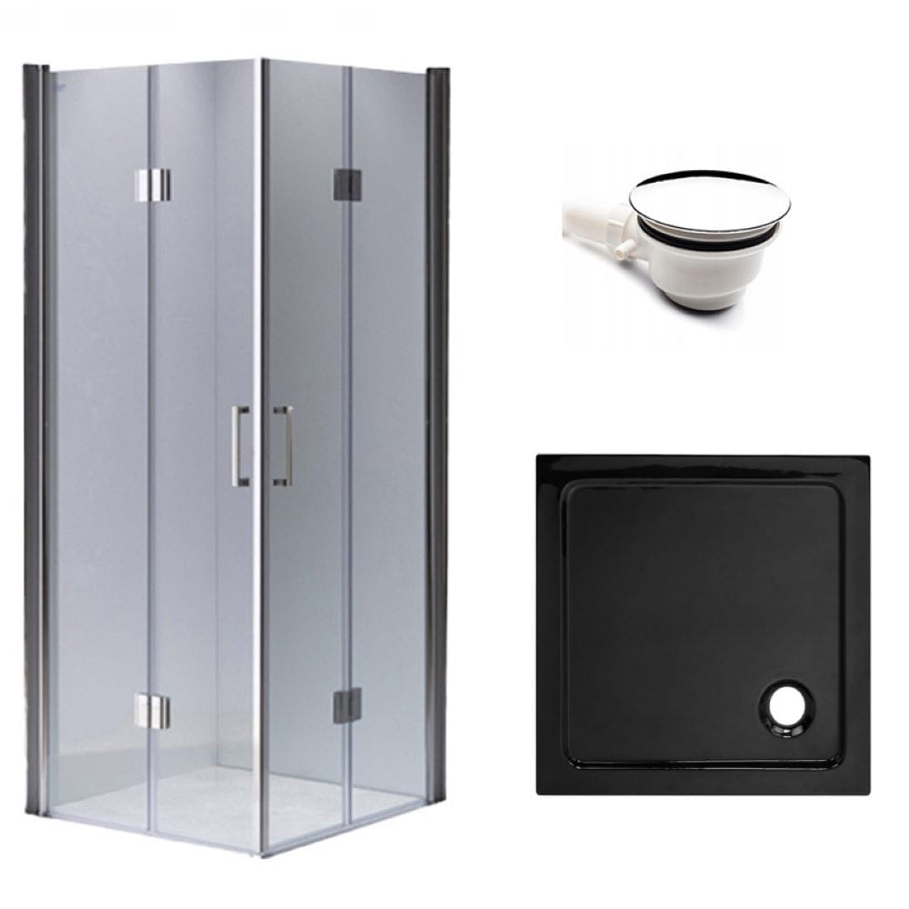 Zestaw - kabina prysznicowa kwadratowa 90x90 cm - brodzik - syfon