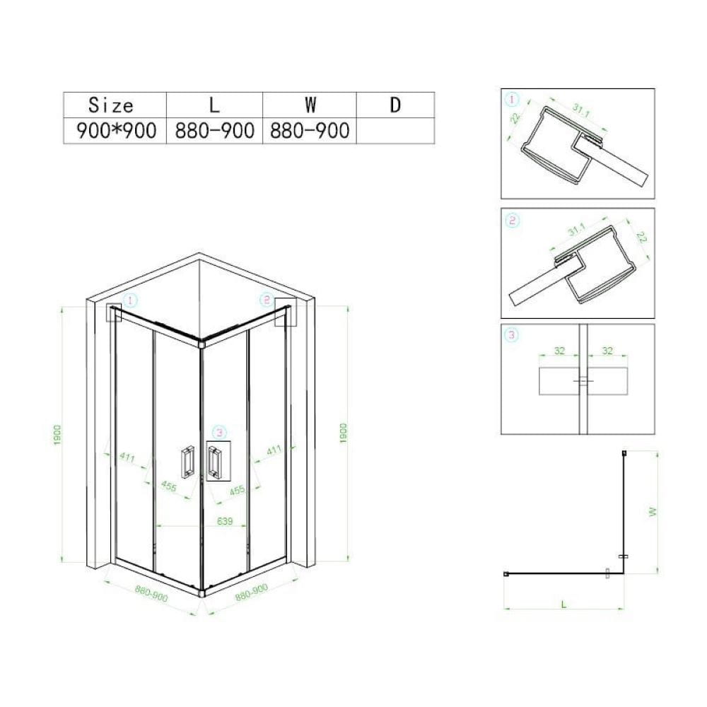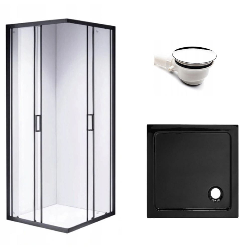 Zestaw - kabina prysznicowa kwadratowa 90x90 cm - brodzik - syfon