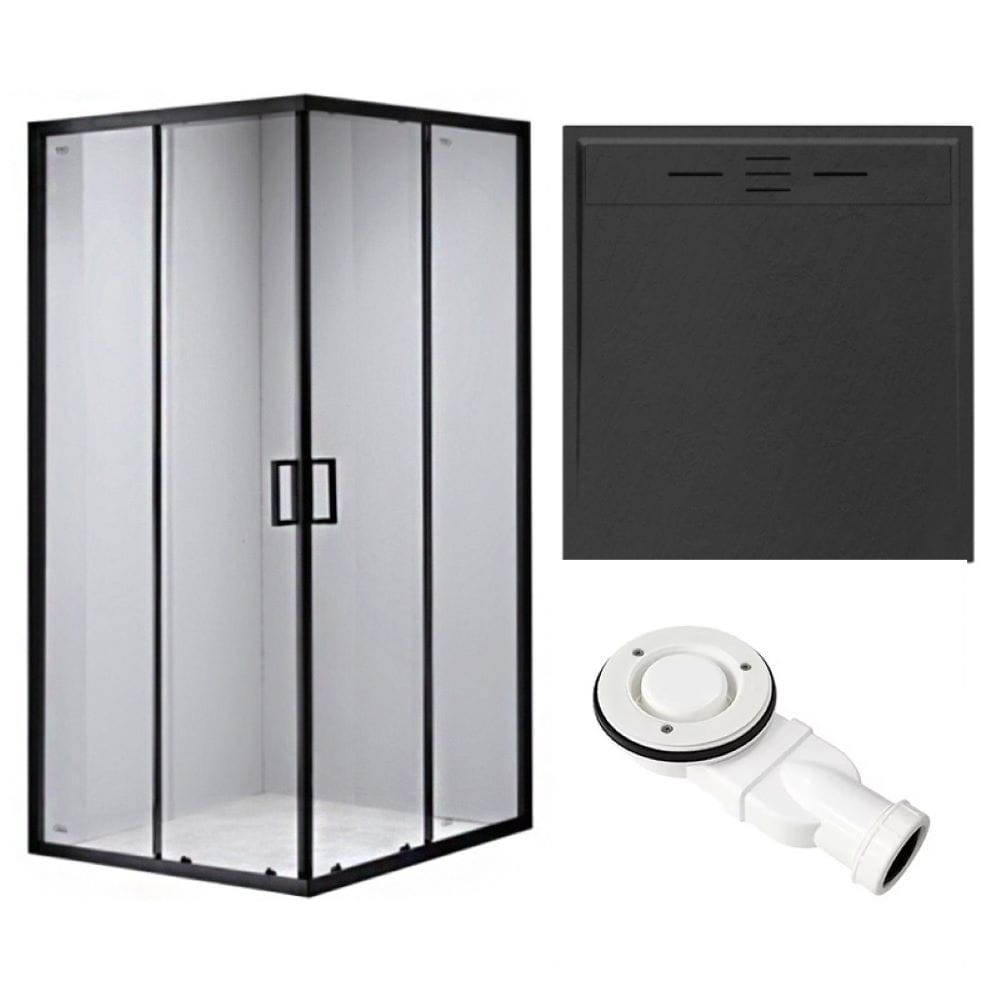 Zestaw - kabina prysznicowa kwadratowa 90x90 cm - brodzik - syfon