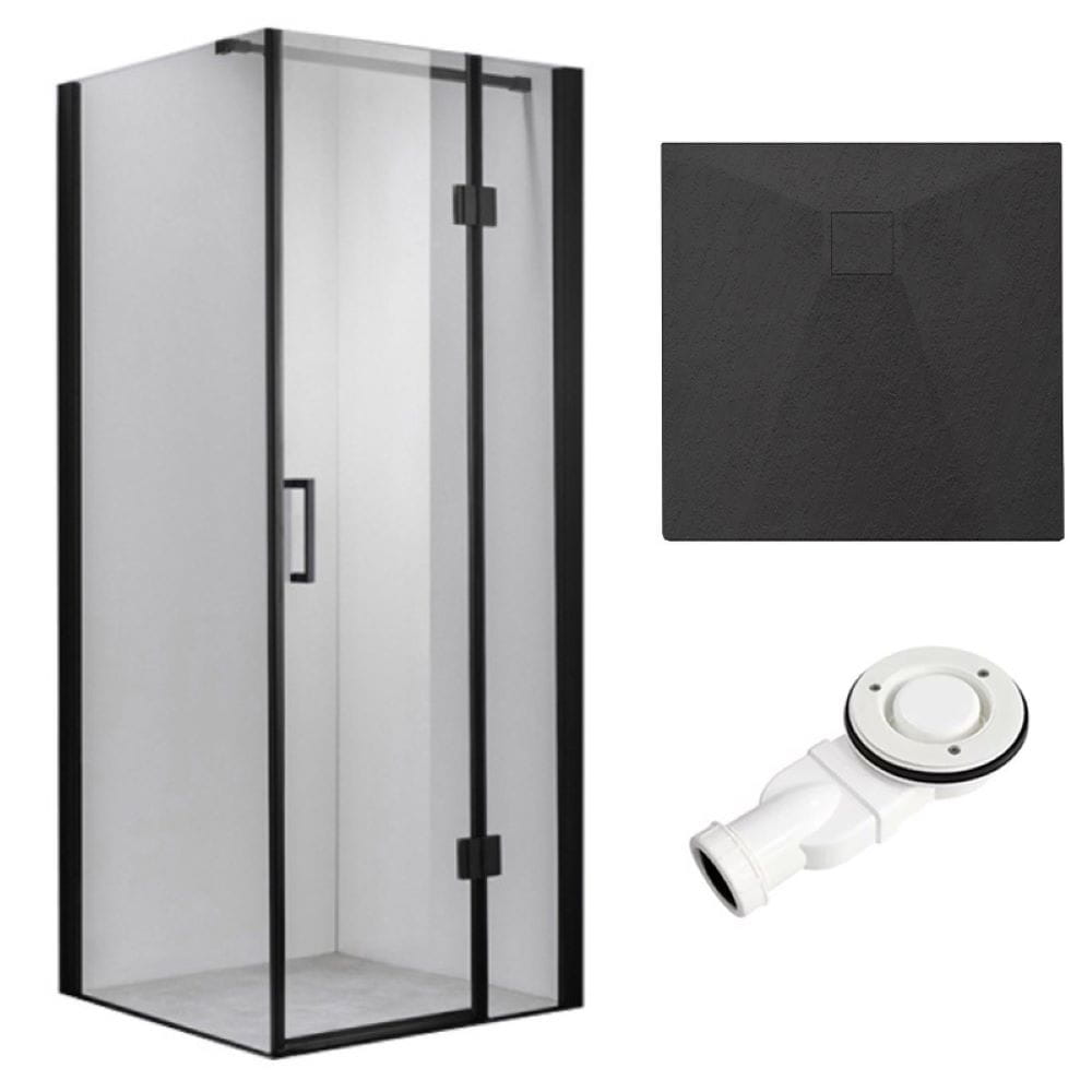 Zestaw - kabina prysznicowa kwadratowa 90x90 cm - brodzik - syfon
