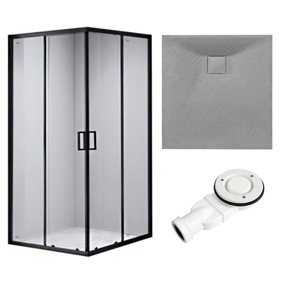 Zestaw - kabina prysznicowa kwadratowa 90x90 cm - brodzik - syfon