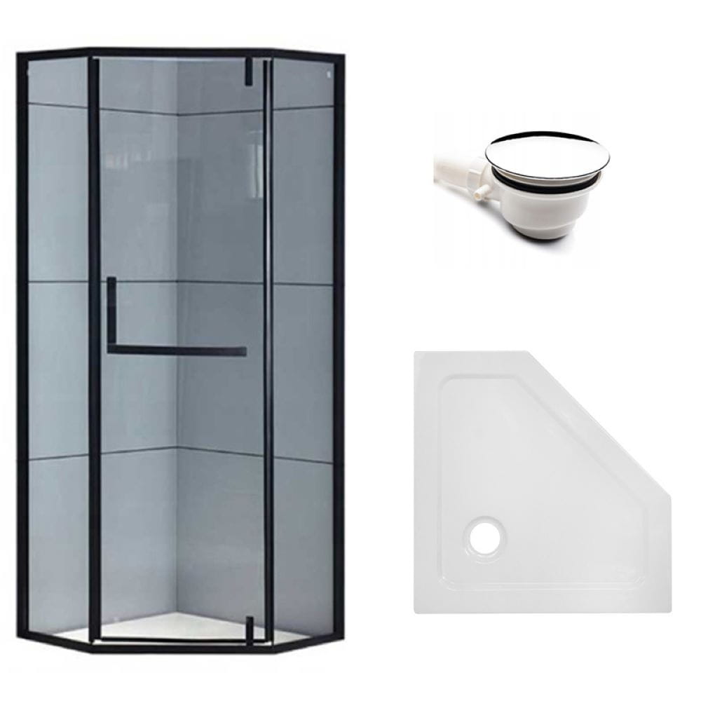 Zestaw - kabina prysznicowa pięciokątna 80x80 cm - brodzik - syfon