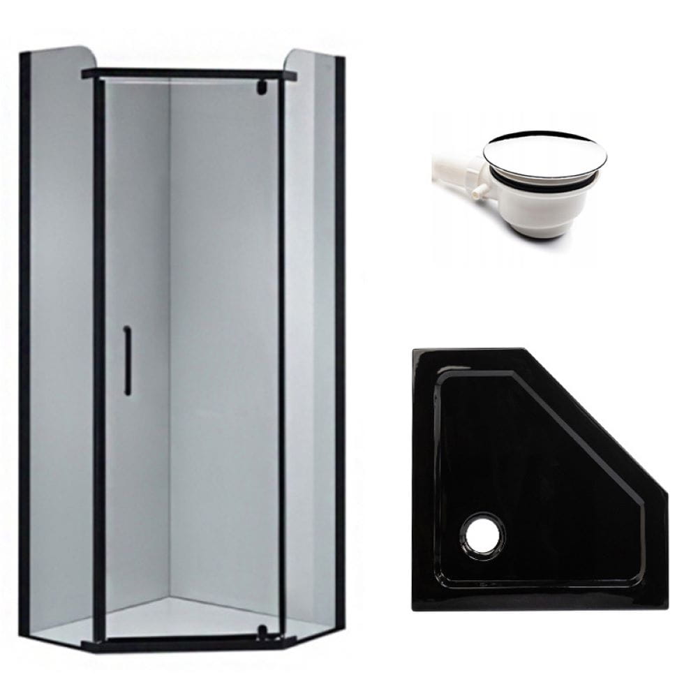 Zestaw - kabina prysznicowa pięciokątna 80x80 cm - brodzik - syfon