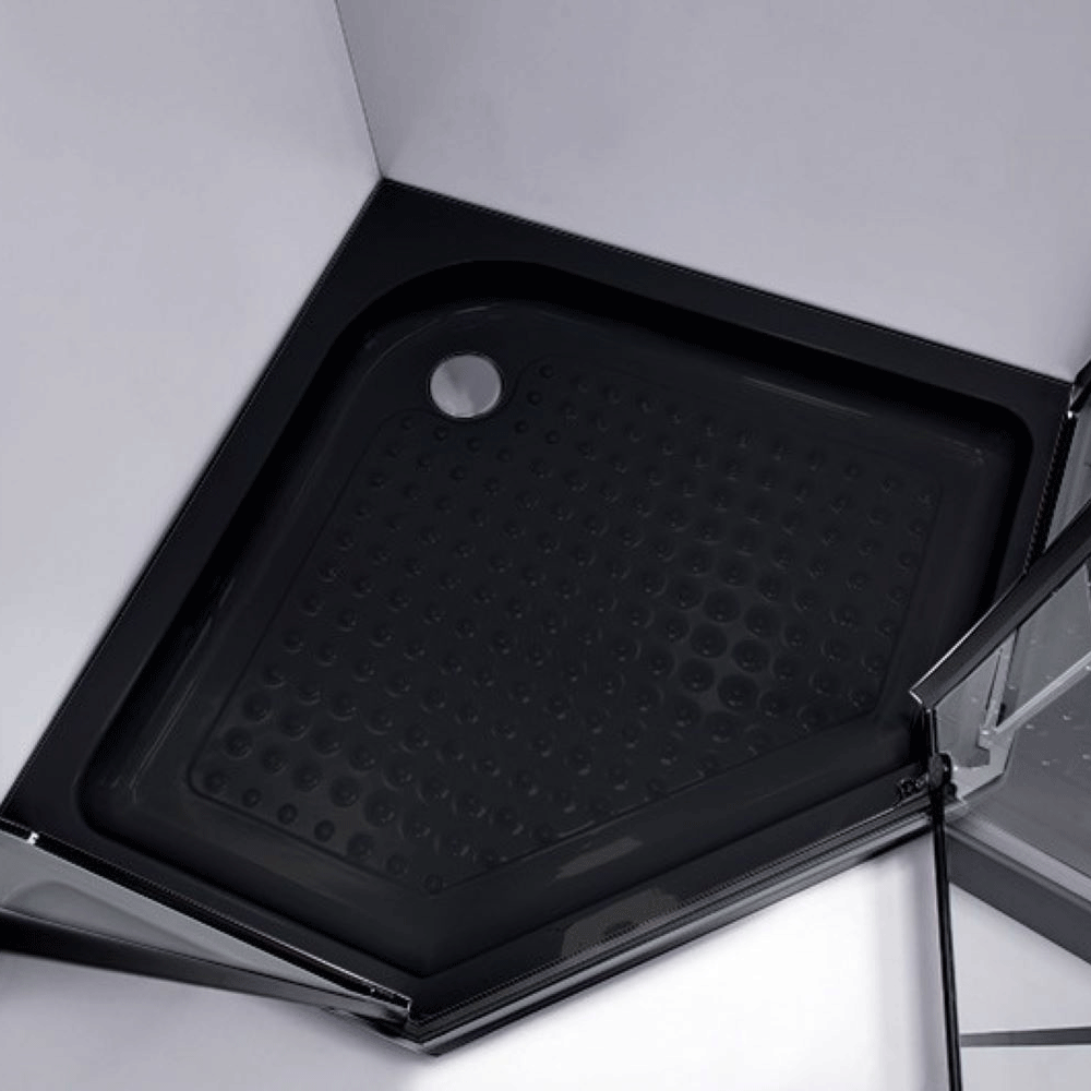 Brodzik pięciokątny 90 x 90 SXL07B czarny. Brodzik posiada perforowane dno co ogranicza poślizg. Wzmacniany spód (bardzo gruby i mocny). Wzmocniony dodatkowym włóknem szklanym.