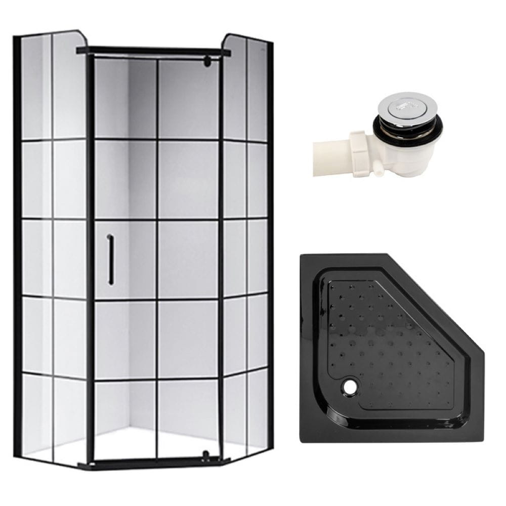 Zestaw - kabina prysznicowa pięciokątna 90x90 cm - brodzik - syfon klik klak