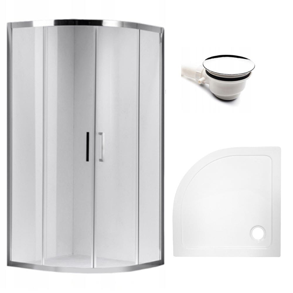 Zestaw - kabina prysznicowa półokrągła 80x80 cm - brodzik - syfon
