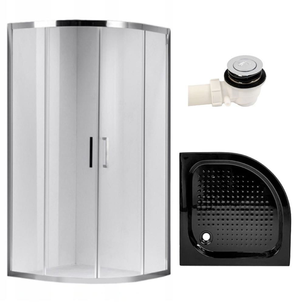 Zestaw - kabina prysznicowa półokrągła 90x90 cm - brodzik - syfon klik klak