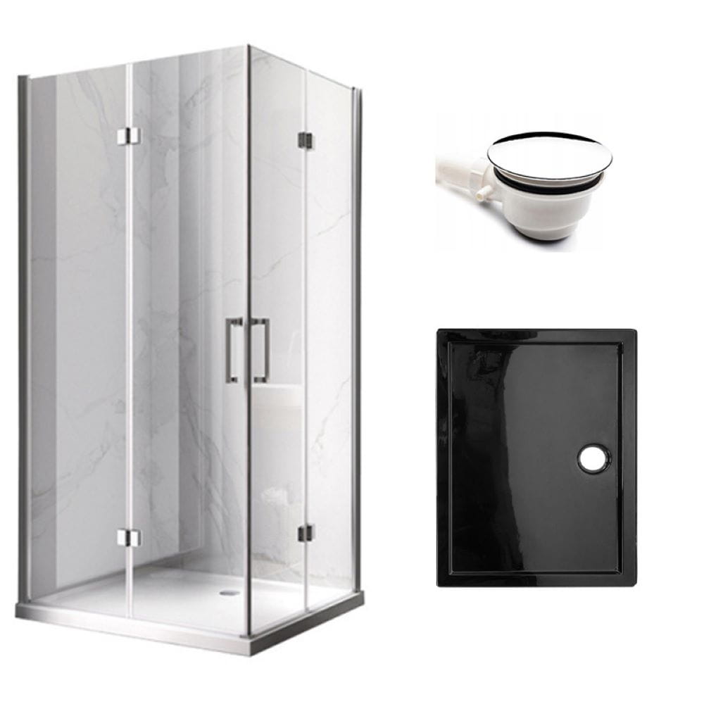 Zestaw - kabina prysznicowa prostokątna 100x90 cm - brodzik - syfon