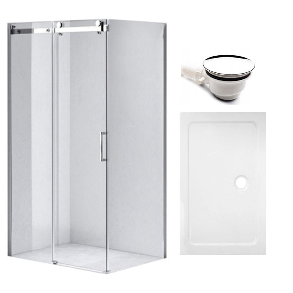 Zestaw - kabina prysznicowa prostokątna 110x80 cm - brodzik - syfon