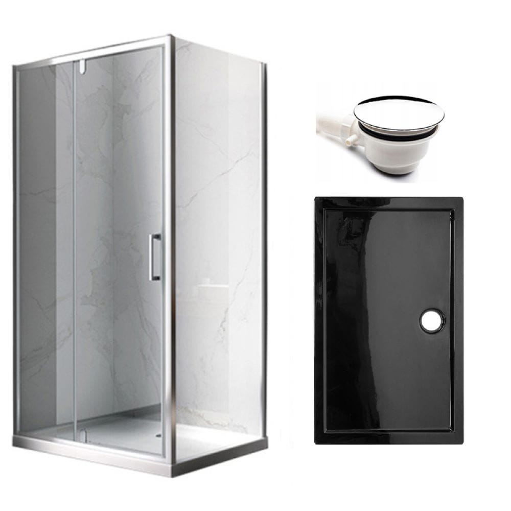 Zestaw - kabina prysznicowa prostokątna 120x80 cm - brodzik - syfon