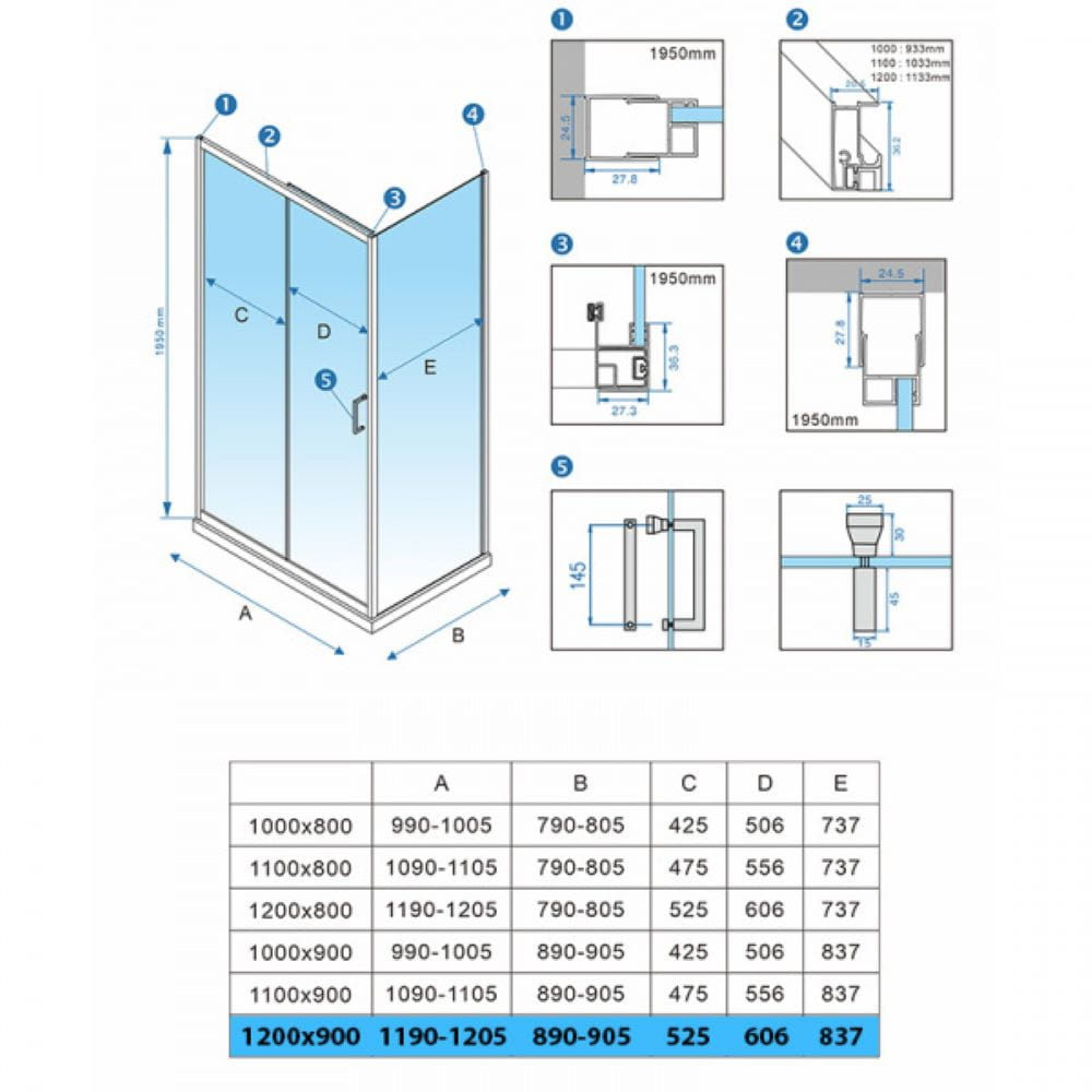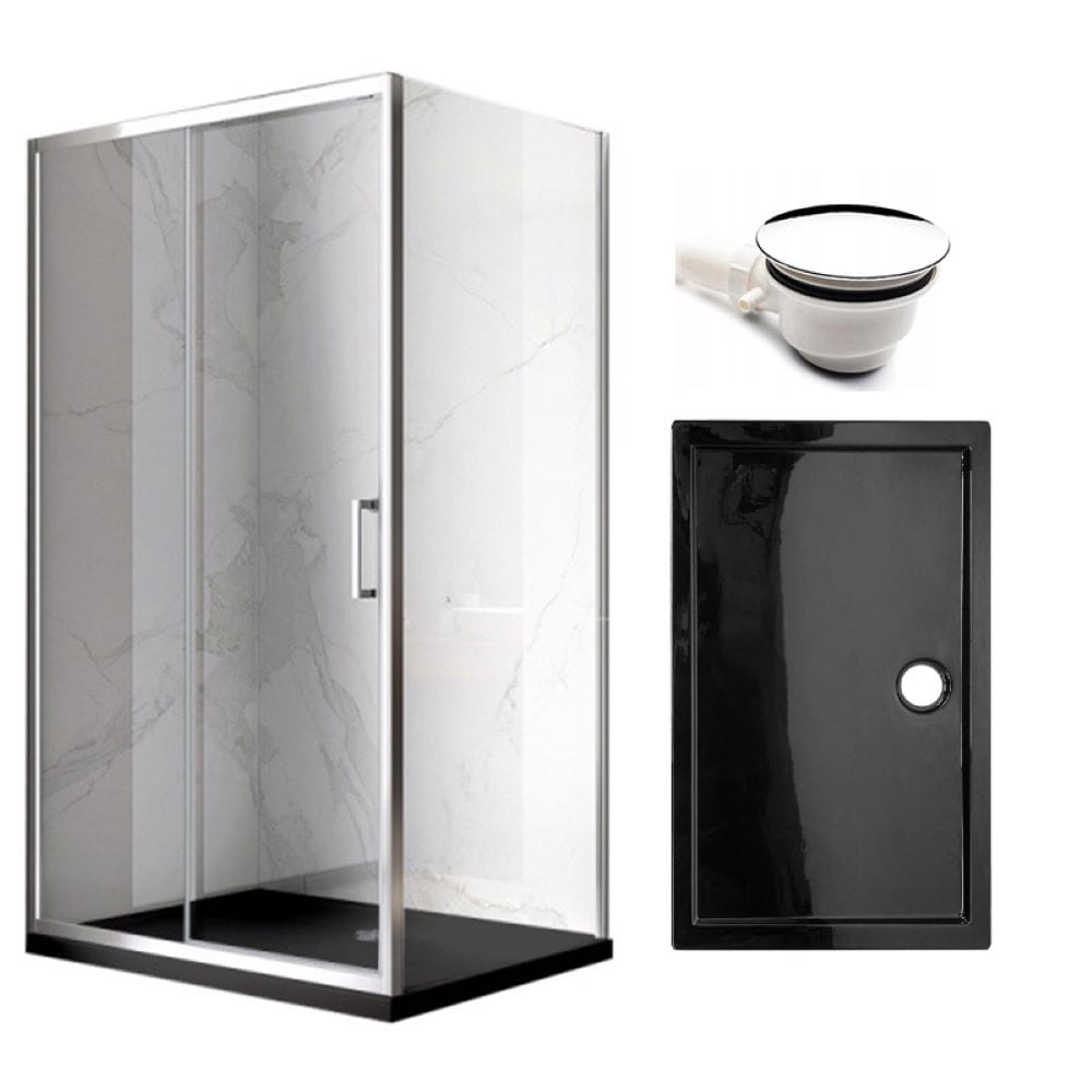 Zestaw - kabina prysznicowa prostokątna 120x90 cm - brodzik - syfon