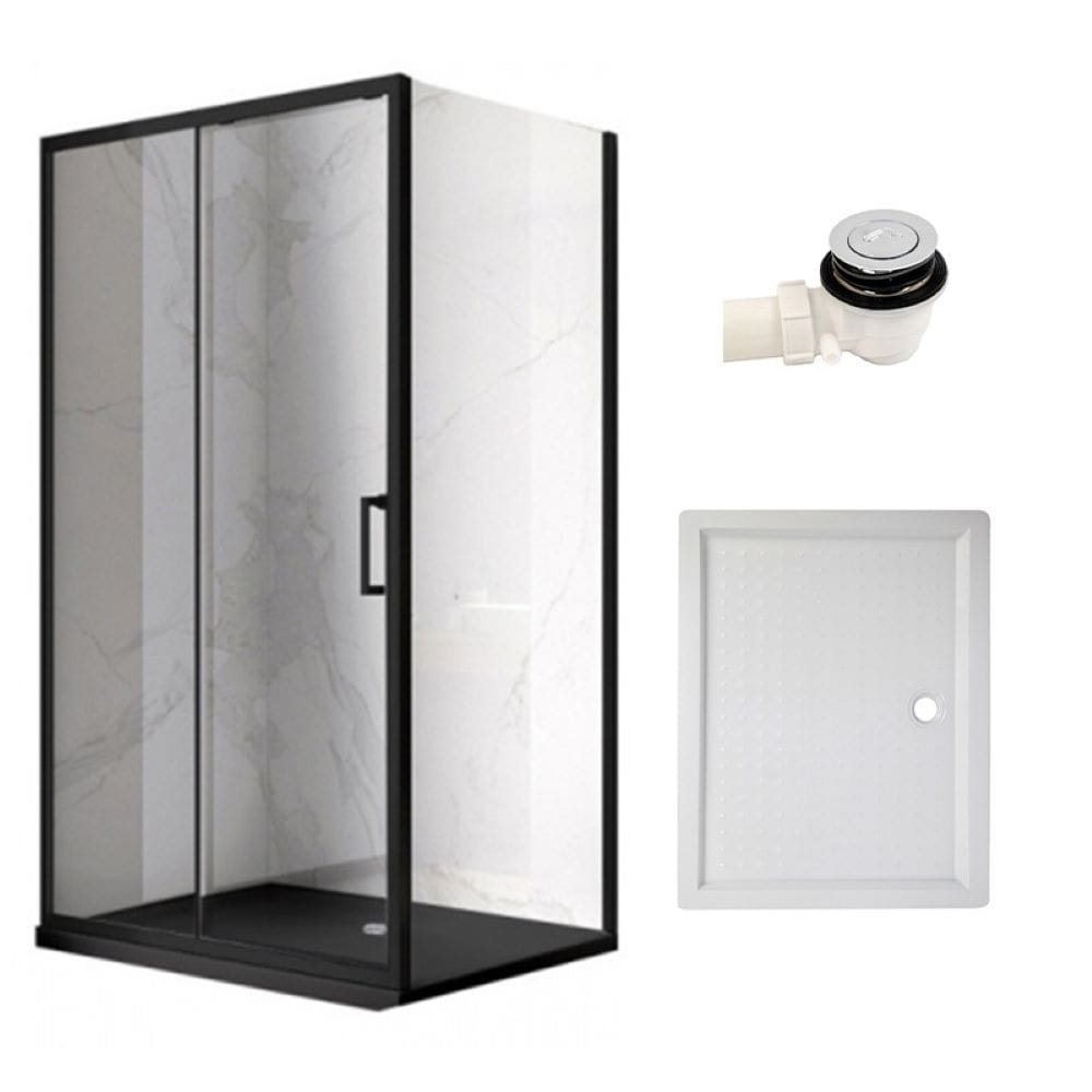 Zestaw - kabina prysznicowa prostokątna 90x80 cm - brodzik - syfon klik klak