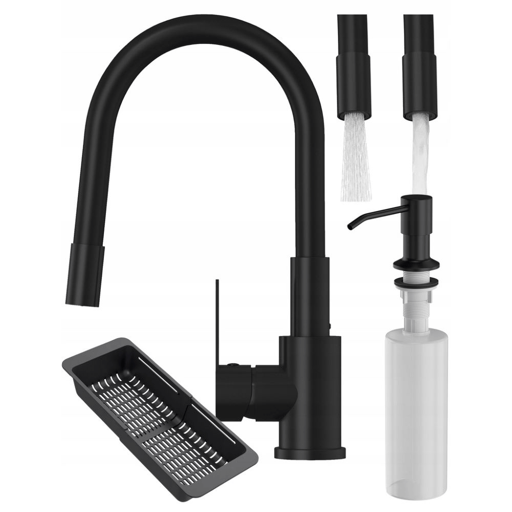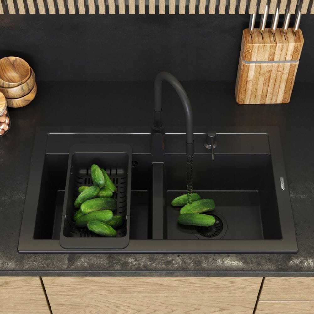 Zestaw kuchenny czarny - bateria Grado Plus - dozownik - ociekarka
