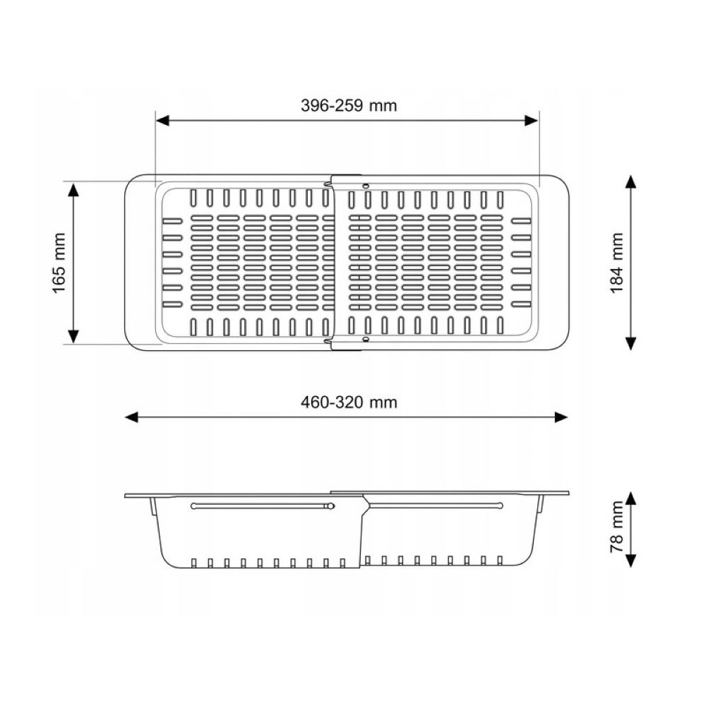 ● Koszyk składany do zlewu w kolorze czarnym. Dzięki regulacji koszyk pasuje do większości zlewozmywaków dostępnych na rynku. Wymiary (produkt złożony): 32 cm x 18,4 cm x 7,8 cm; maksymalne wymiary (po rozłożeniu): 46 cm x 18,4 cm x 7,8 cm.