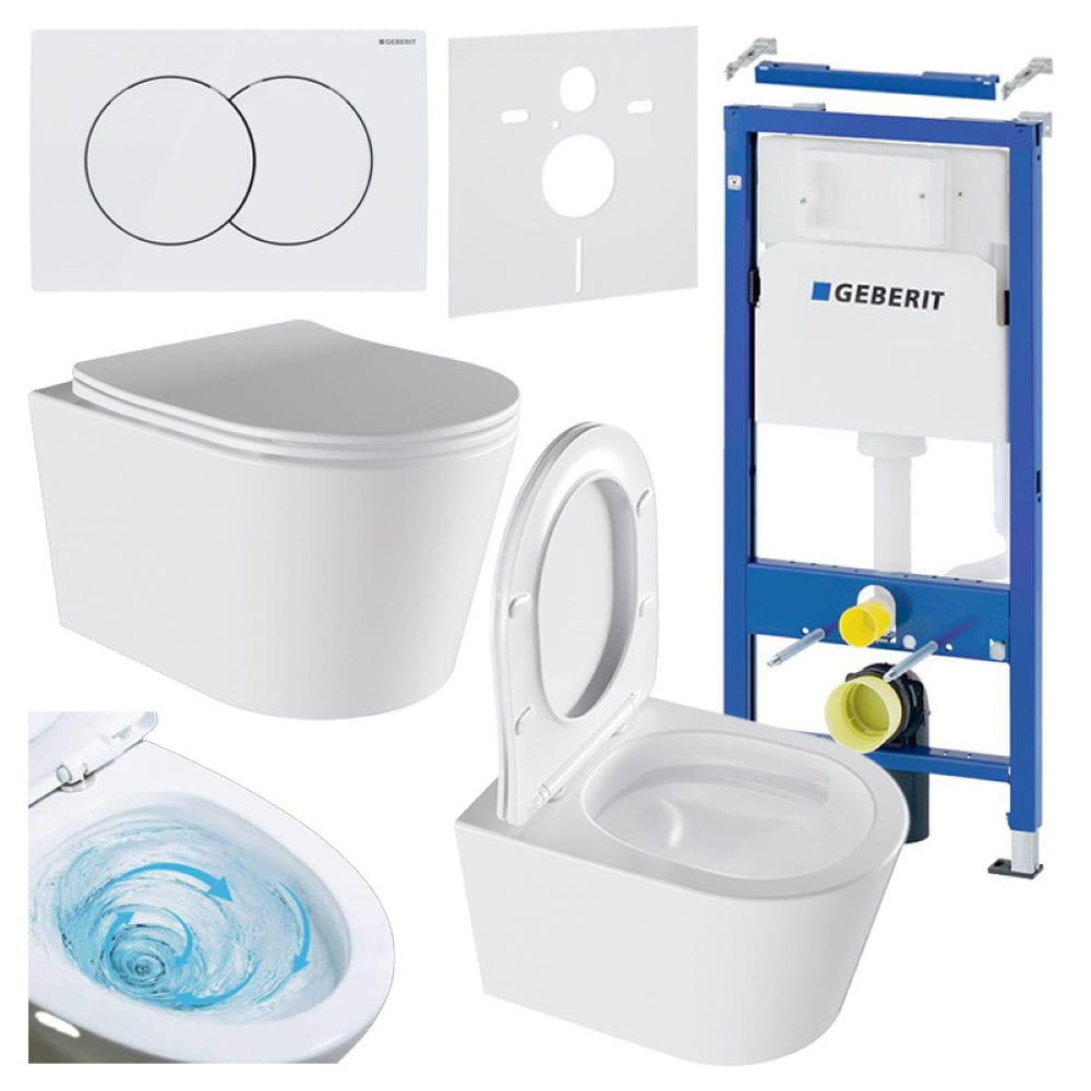 Zestaw zawiera wszystkie niezbędne komponenty do instalacji toalety wiszącej.