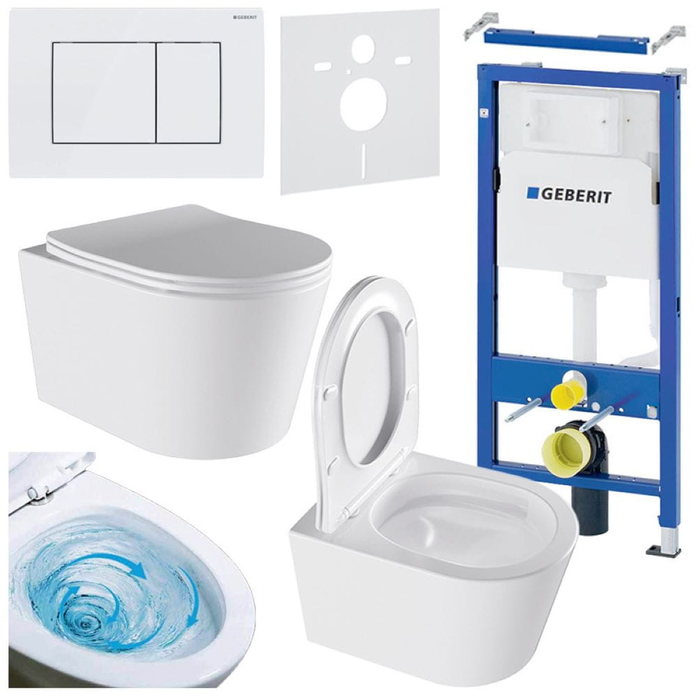Zestaw zawiera wszystkie niezbędne komponenty do instalacji toalety wiszącej.
