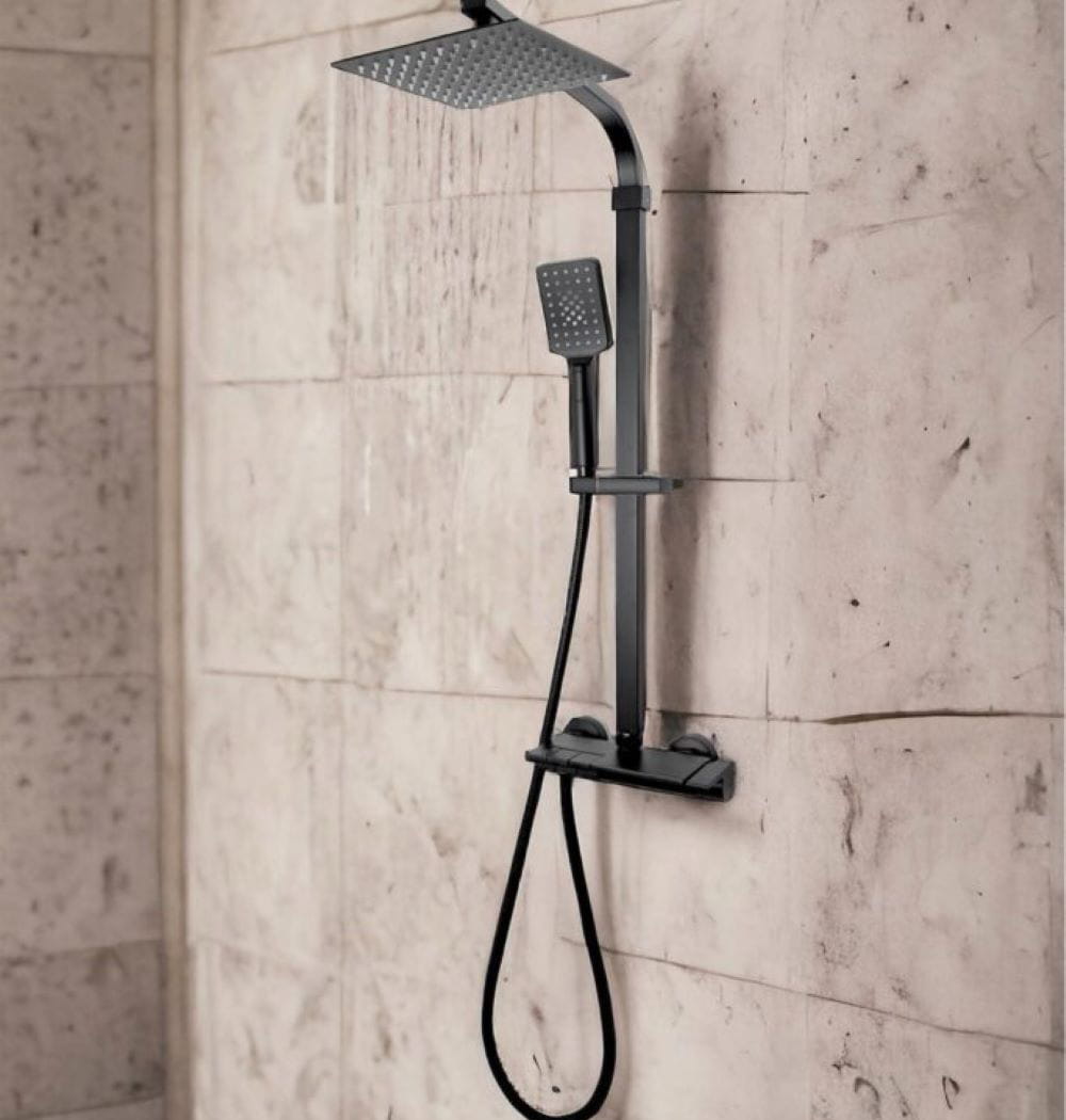 Zestaw wannowo-prysznicowy termostatyczny z deszczownicą slim Sonata Czarna