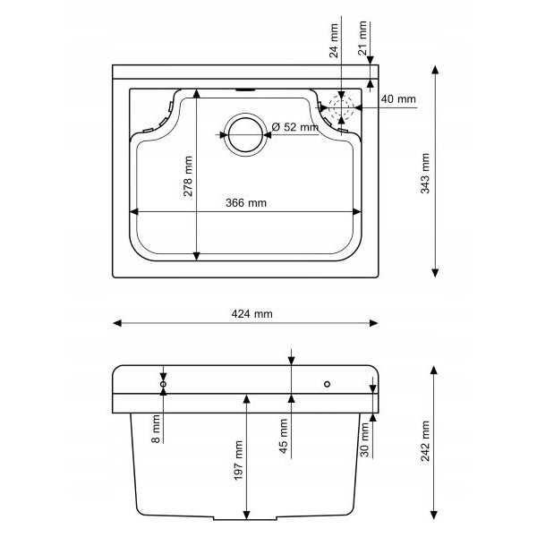 W komplecie wszystko co potrzebne do montażu: syfon, zestaw montażowy.
