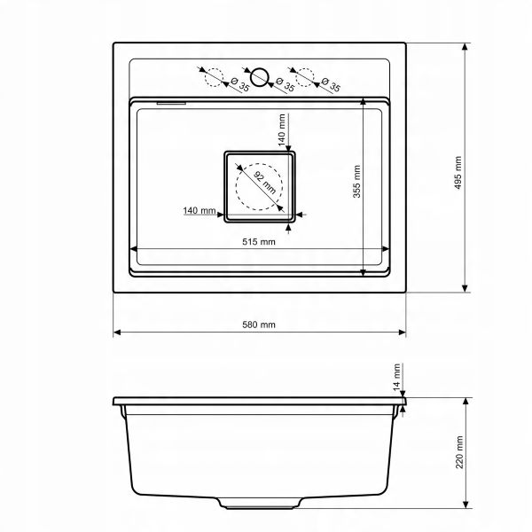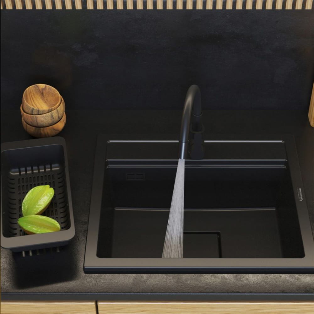 Zlewozmywak kuchenny jednokomorowy stalowy czarny ALOR-BL-59X49 - dozownik - syfon