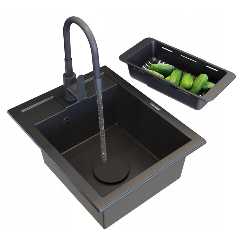 Zestaw Milano - zlewozmywak granitowy czarny - bateria kuchenna - koszyk - zaślepka