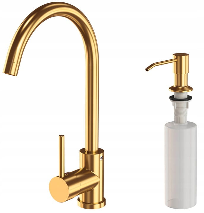 ● Dozownik do zlewozmywaka wykonany z tworzywa PCV, w kolorze złotym. Napełniany od góry. Obrotowa końcówka 360'. Łatwy montaż. Uzupełnienie płynu poprzez wyjęcie pompki, nie wymaga odkręcania pojemnika. W komplecie otrzymasz wszystko, co potrzebne do montażu.