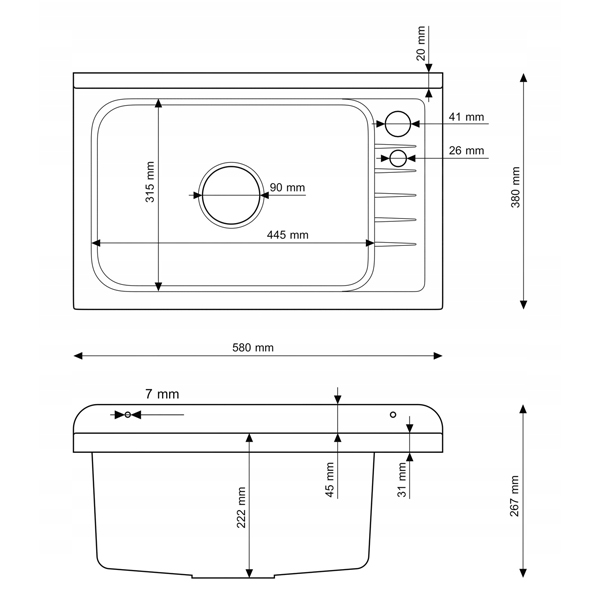 Komora posiada podwierty przeznaczone na baterię kuchenną i dozownik (do wycięcia we własnym zakresie).