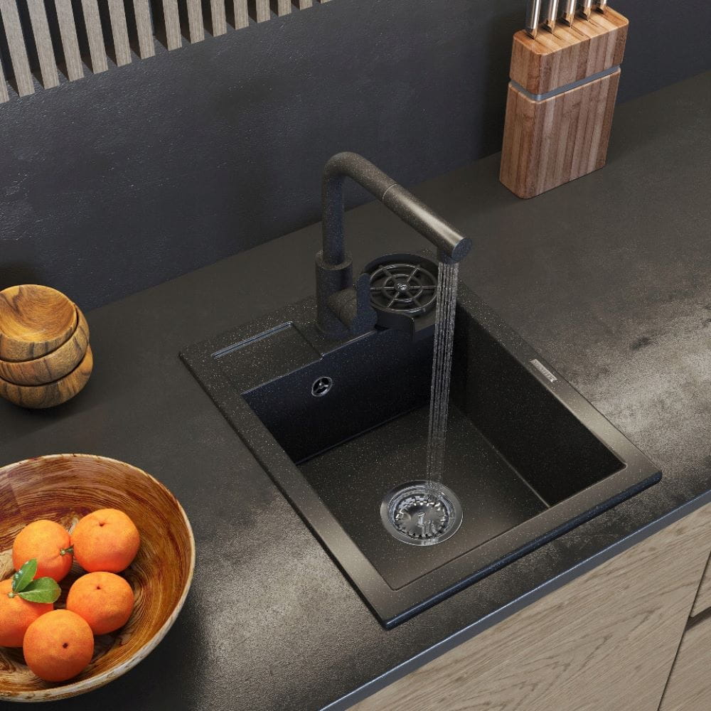 Zlew granitowy czarny nakrapiany - bateria kuchenna - myjka - zestaw Best