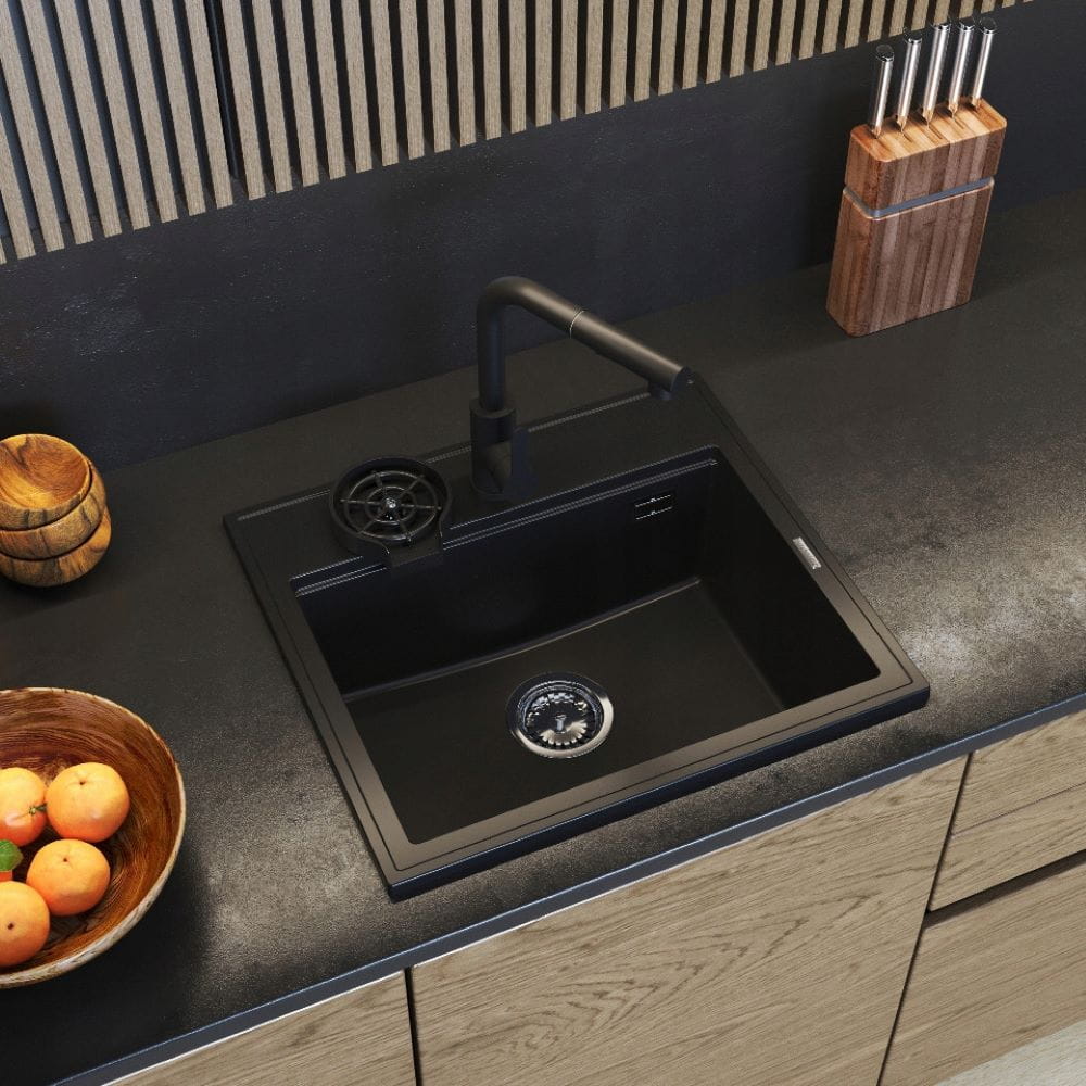 Zestaw Milano - zlewozmywak granitowy czarny - bateria kuchenna - mata - syfon
