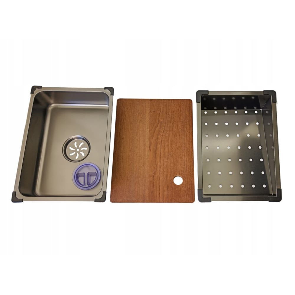 Zlew stalowy czarny - bateria wodospad - myjka - koszyk - dozownik - zestaw Sarmo