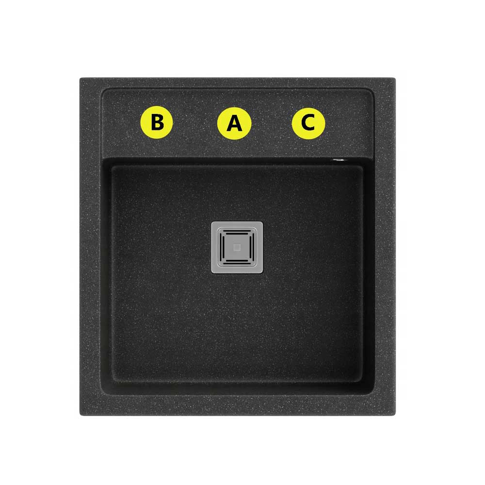 Istnieje możliwość BEZPŁATNEGO nawiercenia otworów. Miejsca, w których mogą być wykonane zostały oznaczone symbolami: A, B i C.