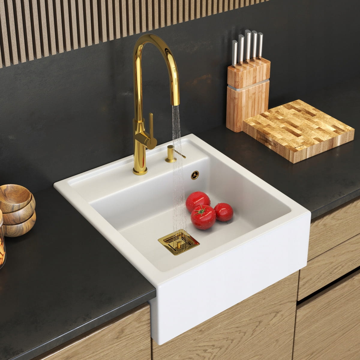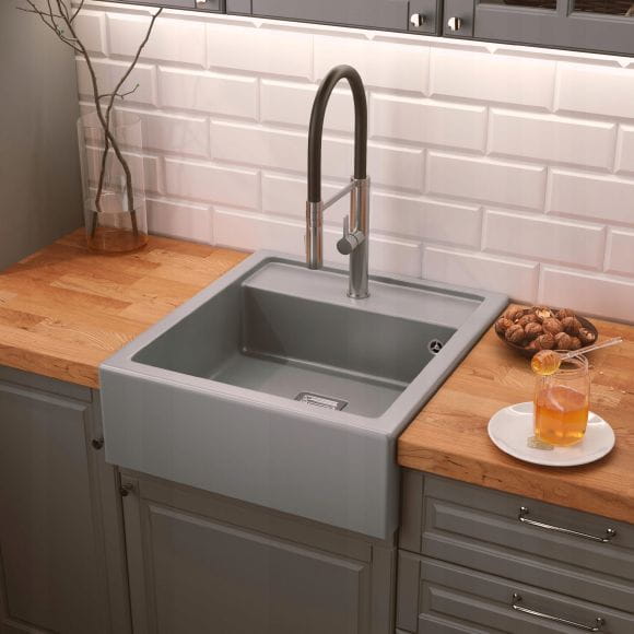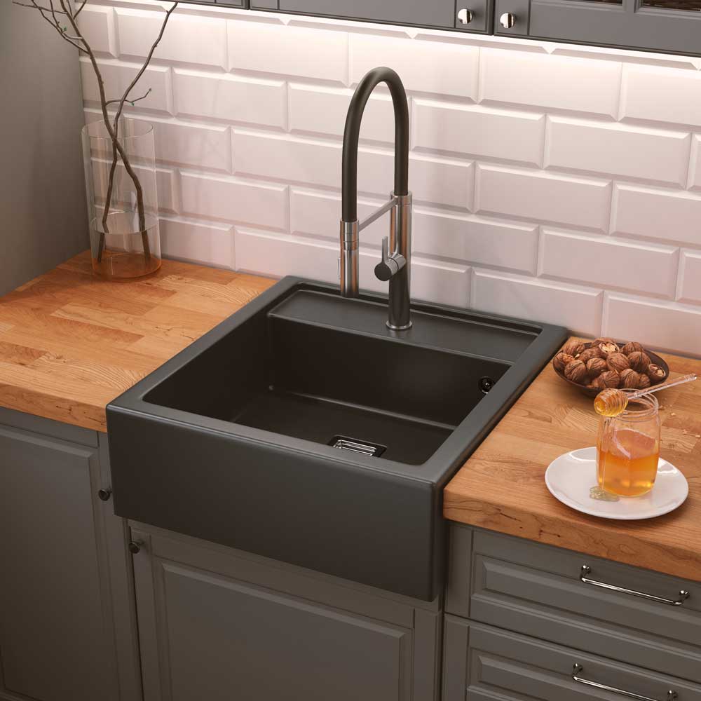 Wysokiej jakości granitowy, jednokomorowy Zlewozmywak Farmerski do wyboru z 7 kolorów. Wyprodukowany przez polskiego producenta. Gwarancja najwyższej wytrzymałości, dzięki specjalnej mieszance granitan plusR – odpornej na przebarwienia i zarysowania. Charakterystyczny front zlewu w formie fartucha ułatwia przysunięcie się do blatu i przyjęcie pozycji nieobciążającej pleców. Cechuje go wysoka odporność na gwałtowne zmiany temperatury (-18+280 stopni) oraz matowa, łatwa do czyszczenia powierzchnia. Wysoka jakość produktu pozwala nam zaoferować 30 lat gwarancji. Możliwość zabudowy w szafce 60cm.