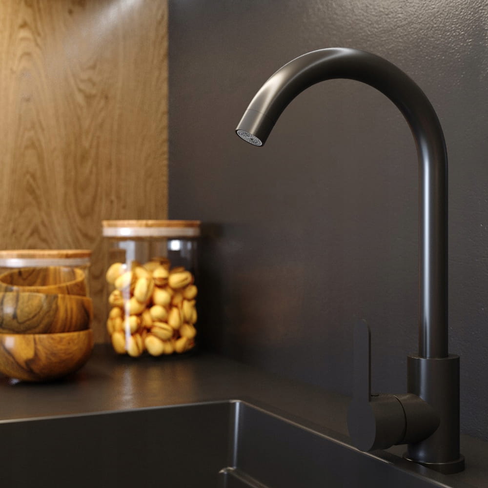 ● Klasyczna bateria kuchenna, która swoim minimalistycznym designem dopełni przestrzeń każdej kuchni. Jej prosta forma nie przytłacza wnętrza i tworzy spójne, a zarazem eleganckie otoczenie.