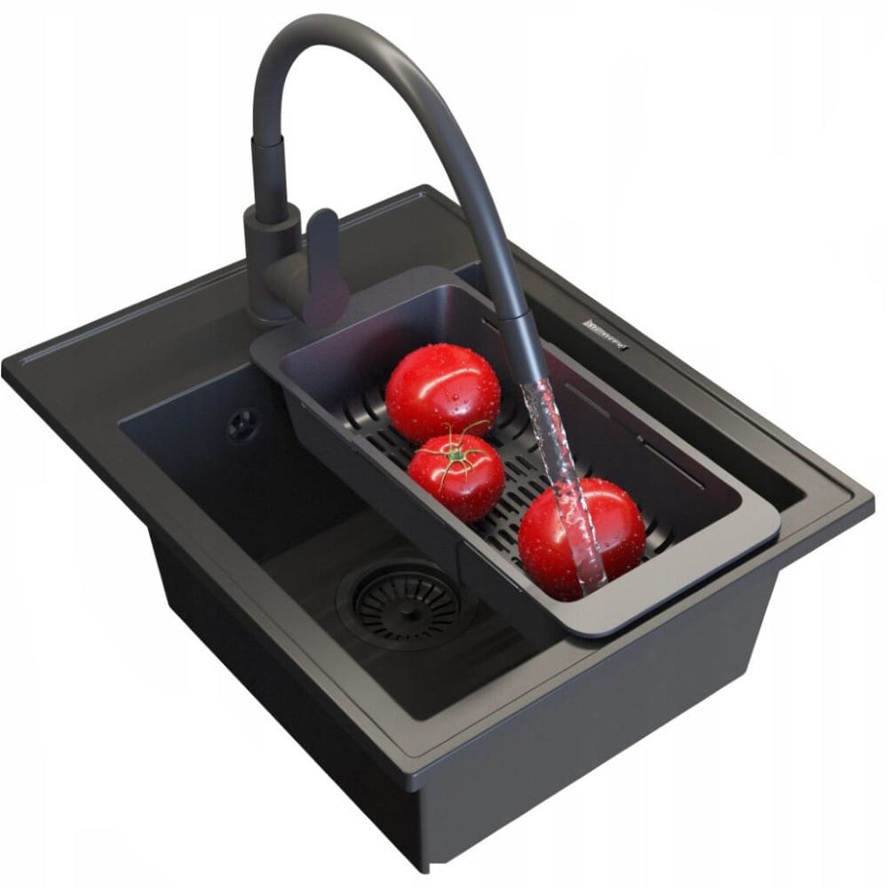 Zlewozmywak granitowy czarny - bateria kuchenna Grado - koszyk - zestaw Nero