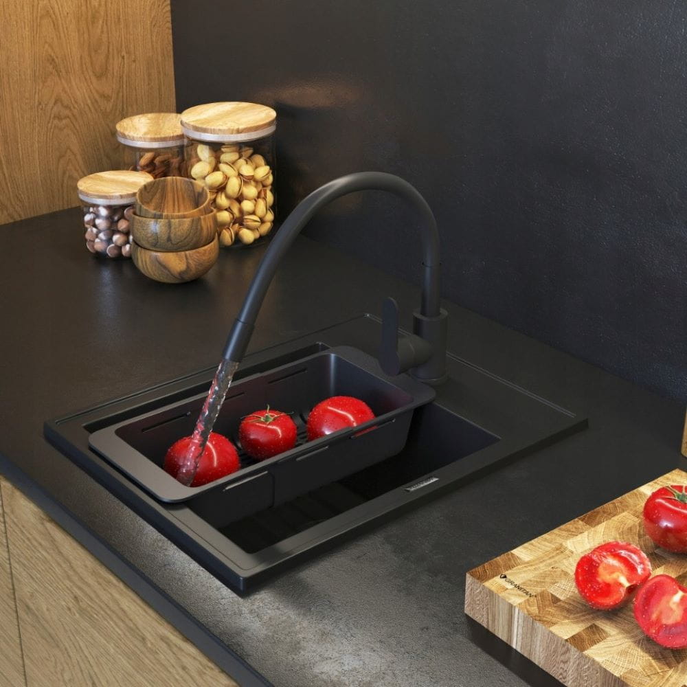 Zestaw Milano - zlewozmywak granitowy czarny - bateria kuchenna - mata - syfon