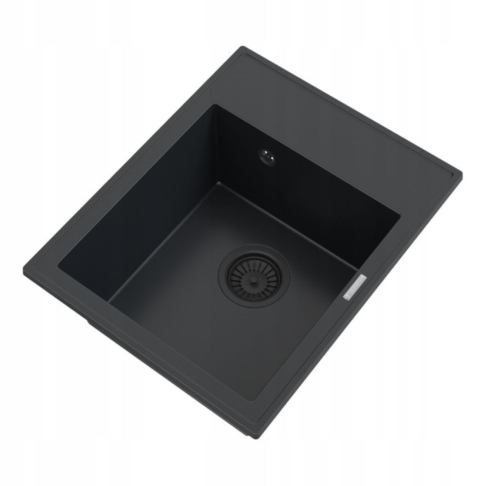 Zlew granitowy czarny - bateria kuchenna - mata - syfon - zestaw Milano