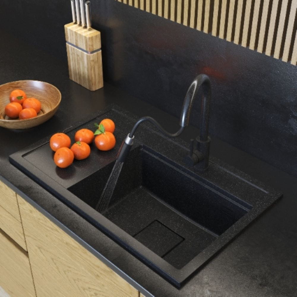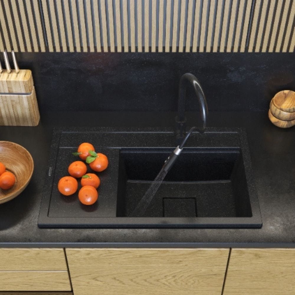 Zlewozmywak granitowy nowoczesny Rendo czarny nakrapiany