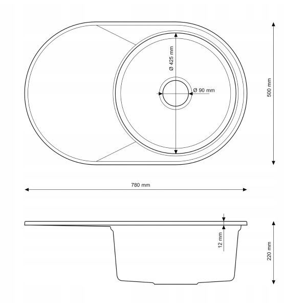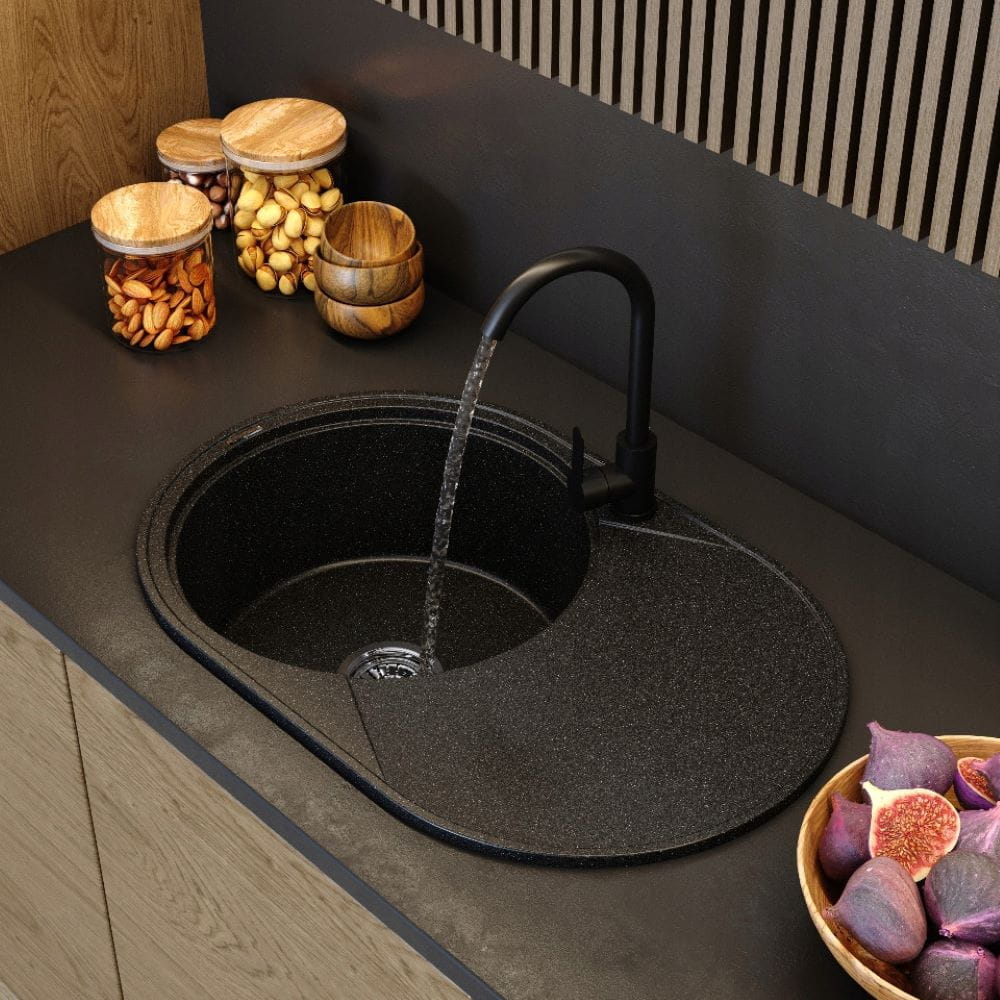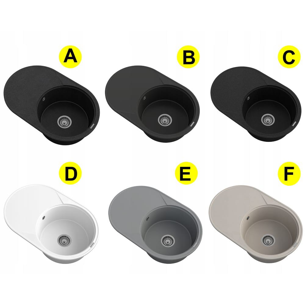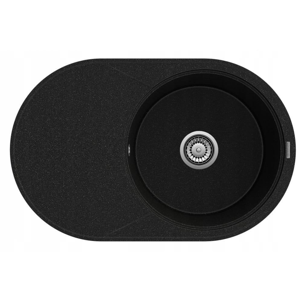 Zlewozmywak granitowy okrągły kuchenny jednokomorowy duży ociekacz Savio czarny metalik