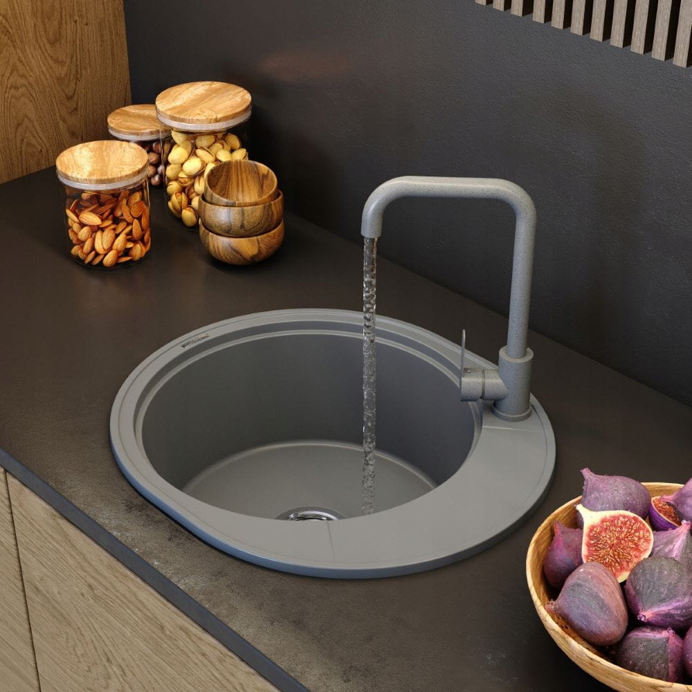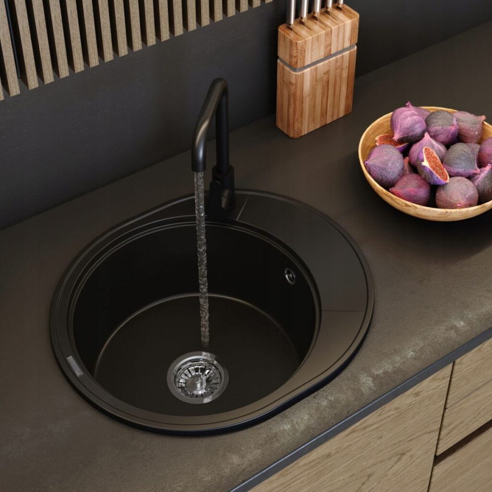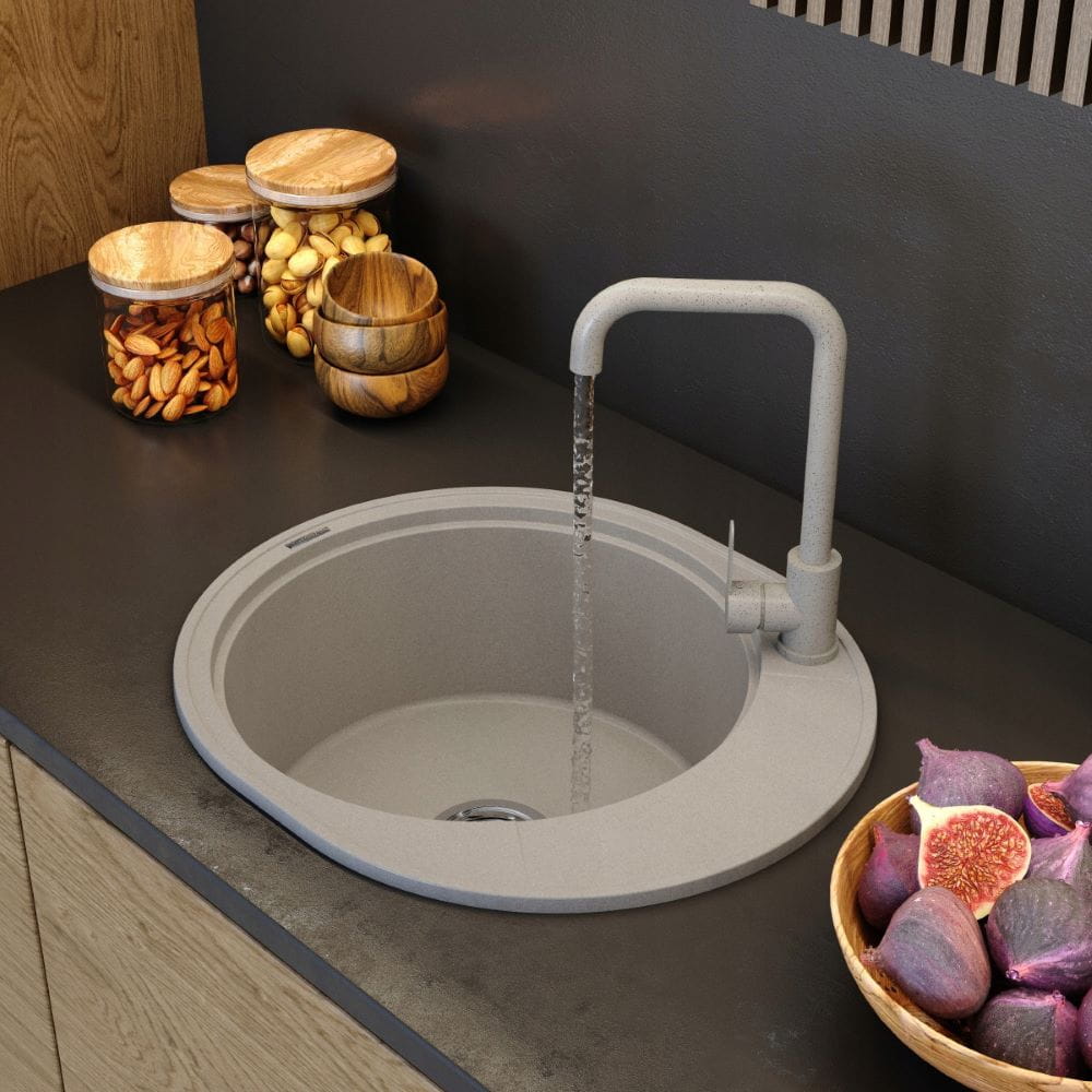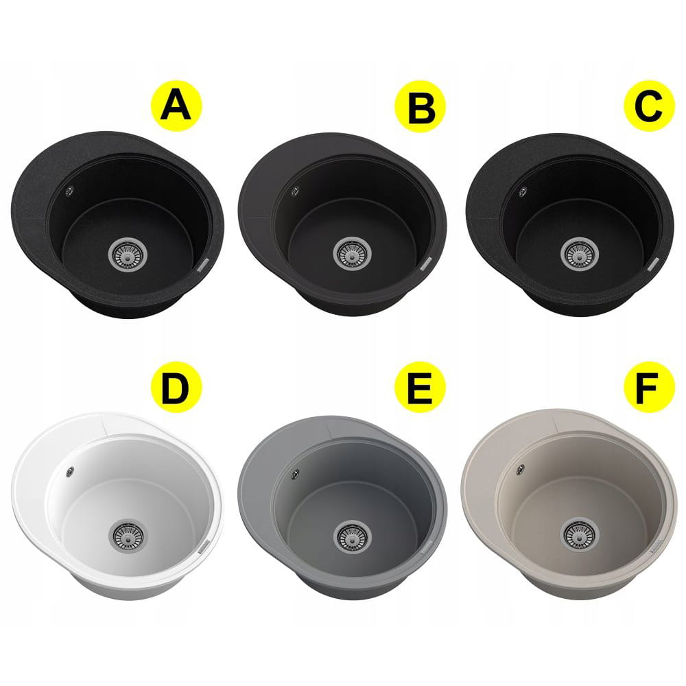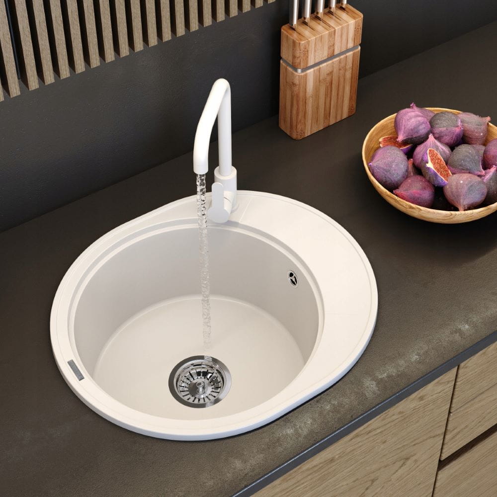 Zlewozmywak granitowy okrągły kuchenny jednokomorowy ociekacz Ramis