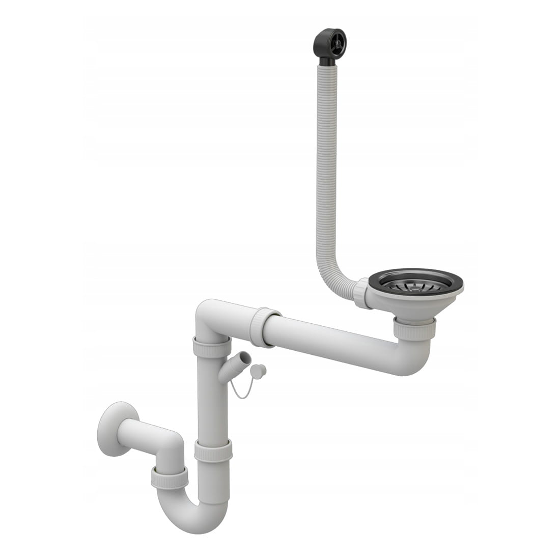 Zlew w komplecie z przyścienny syfon manualny z przelewem CHROM z możliwością podłączenia zmywarki lub pralki (oszczędność przestrzeni) oraz impregnatem do zlewu GraniProtect.
