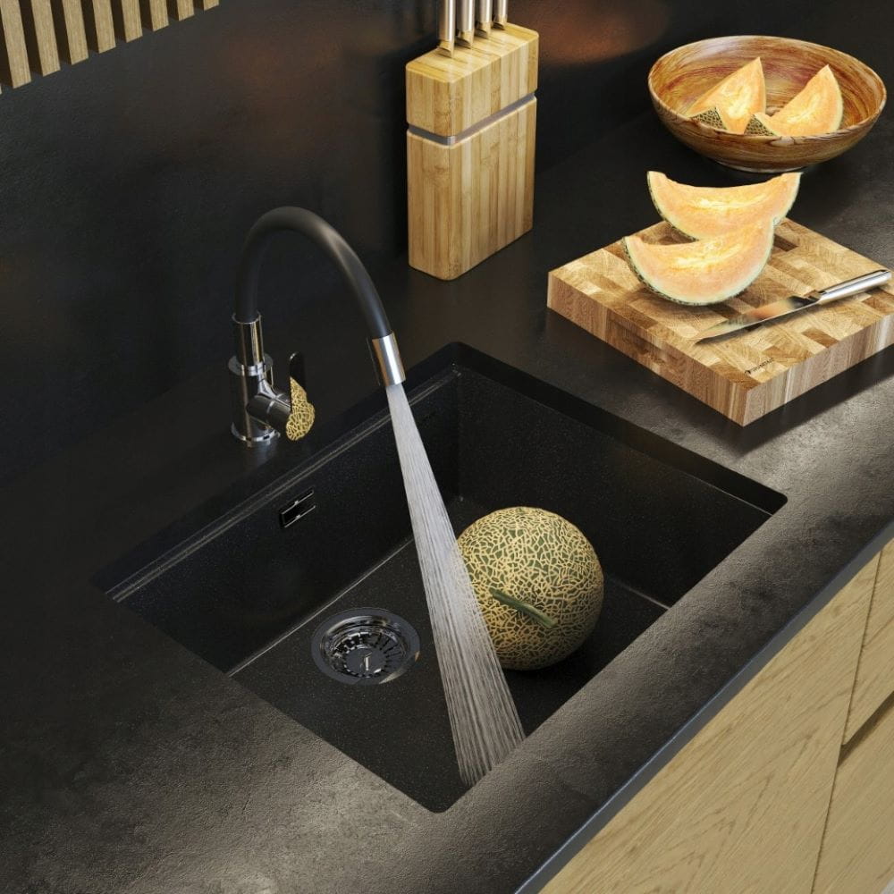 Elegancki zlewozmywak z wysokogatunkowego granitu, idealny do nowoczesnych kuchni. Geometryczny kształt i podblatowy montaż tworzą spójną powierzchnię z blatem. Uniwersalny design i klasyczna kolorystyka doskonale współgrają z blatami kamiennymi, konglomeratami i kompozytowymi. Dostępny w 5 wersjach kolorystycznych.