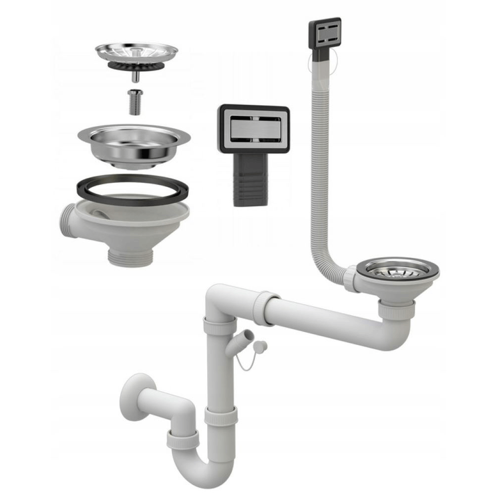 W zestawie: zlewozmywak Sinko, przyścienny syfon manualny CHROM z możliwością podłączenia zmywarki lub pralki (oszczędność przestrzeni) oraz impregnat do zlewu GraniProtect.