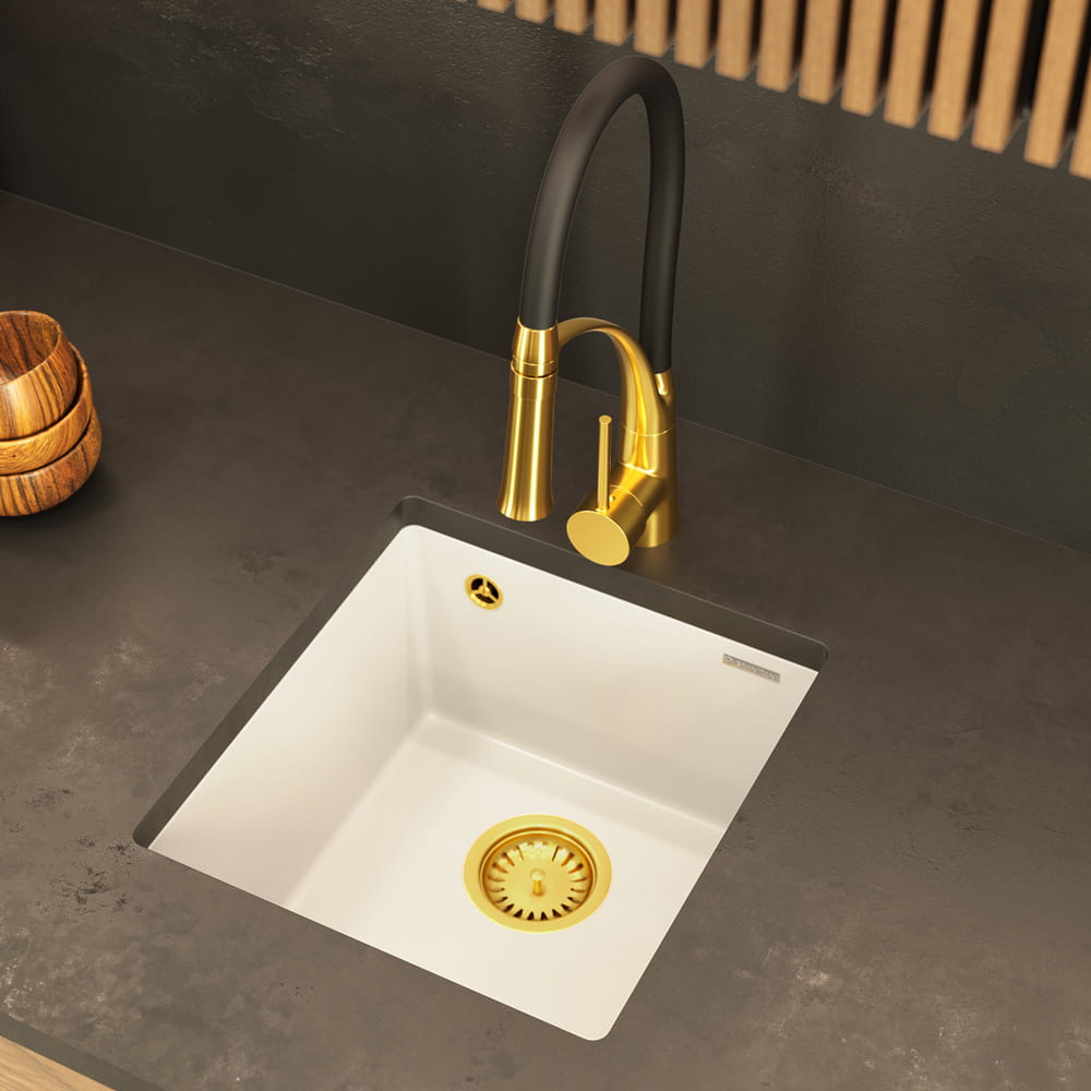 Klasyczny, geometryczny kształt w połączeniu z podblatowym systemem montażu sprawia, że zlew tworzy idealnie spójną powierzchnię z blatem kuchennym. Bogata kolorystyka, w której występuje model, pozwala bezproblemowo łączyć go z taflami kamiennymi, konglomeratami czy blatami kompozytowymi.