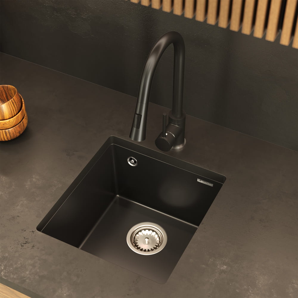 MINI 45, to wysokiej jakości granitowy, jednokomorowy zlewozmywak podwieszany do szafki od 40 cm, w 5 kolorach do wyboru. Wyprodukowany przez polskiego producenta. Gwarancja najwyższej wytrzymałości, dzięki specjalnej mieszance granitan plusR – odpornej na przebarwienia i zarysowania. Cechuje go wysoka odporność na gwałtowne zmiany temperatury (-18+280 stopni) oraz matowa, łatwa do czyszczenia powierzchnia.